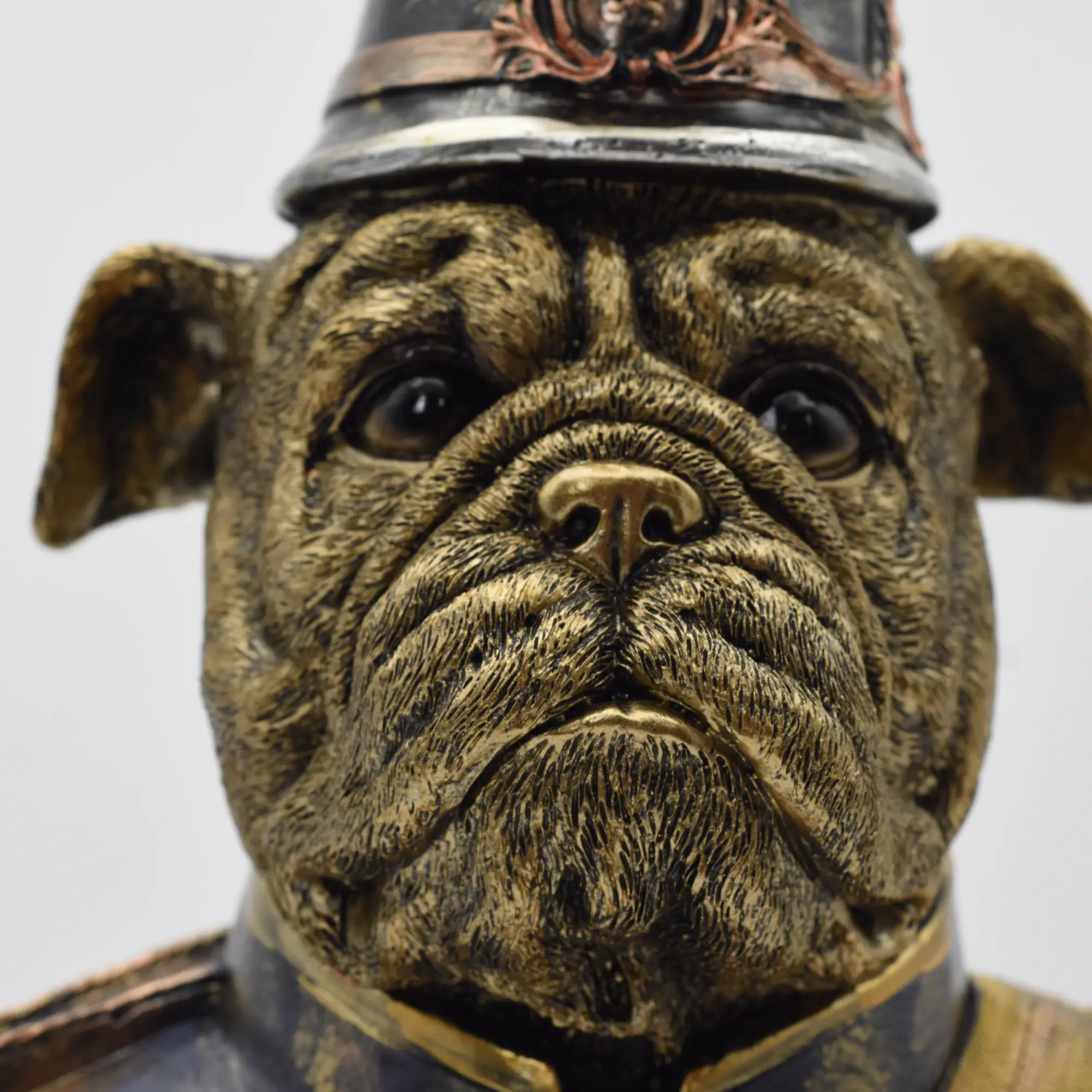 Wir zeigen Ihnen unsere Büste einer Bulldogge in Uniform.